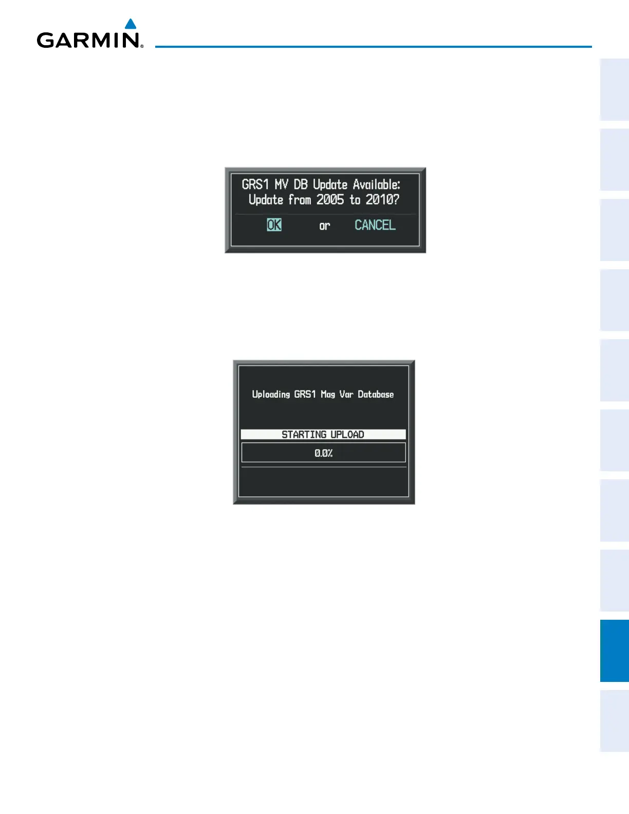 1) With ‘OK’ highlighted, as seen in Figure B-12, press the ENT Key on the MFD. A progress monitor is displayed
