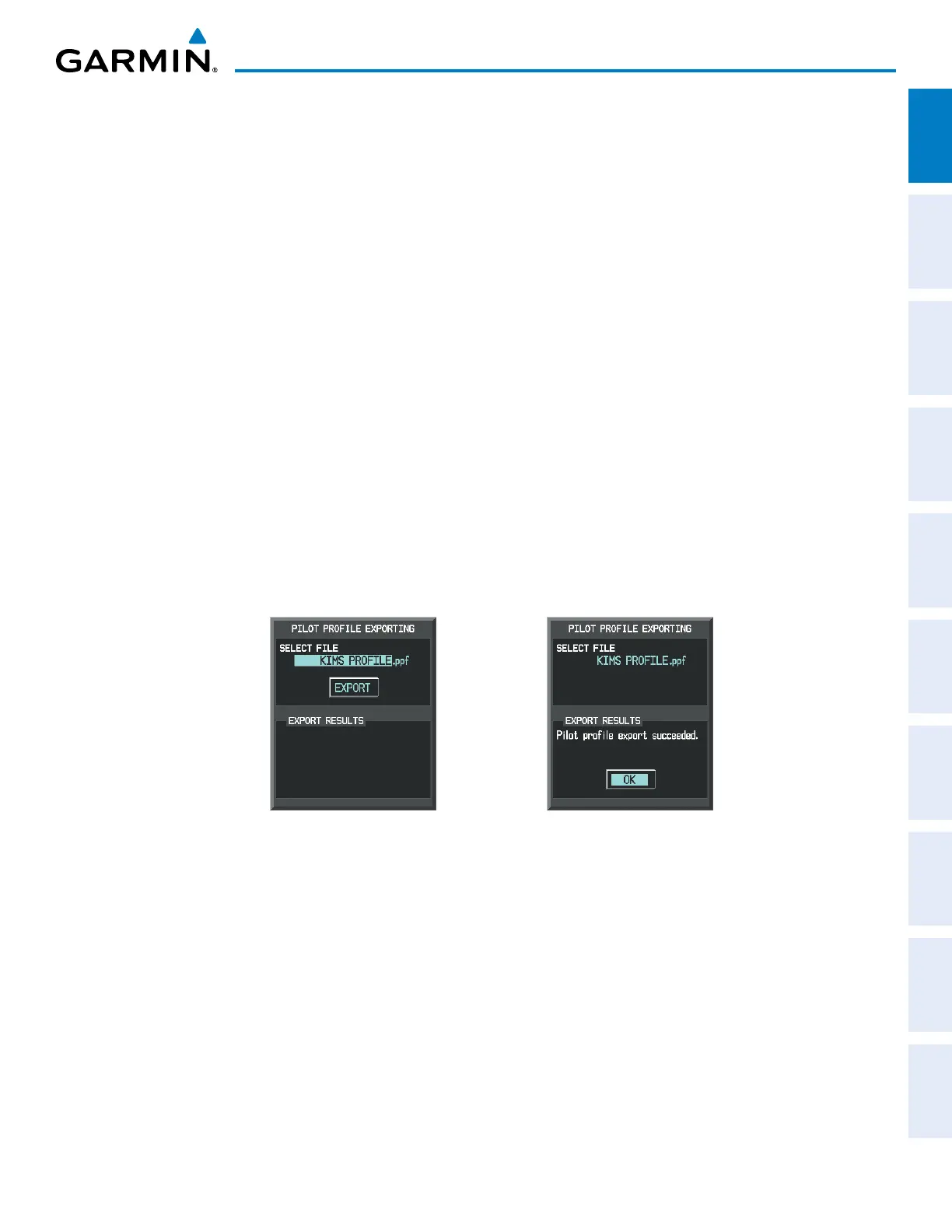 5) To export the pilot profile using the current supplied name, press the ENT Key with ‘EXPORT’ highlighted. To
