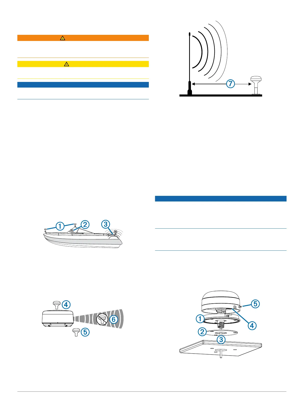 • Als u een radar hebt, kunt u de antenne het beste monteren