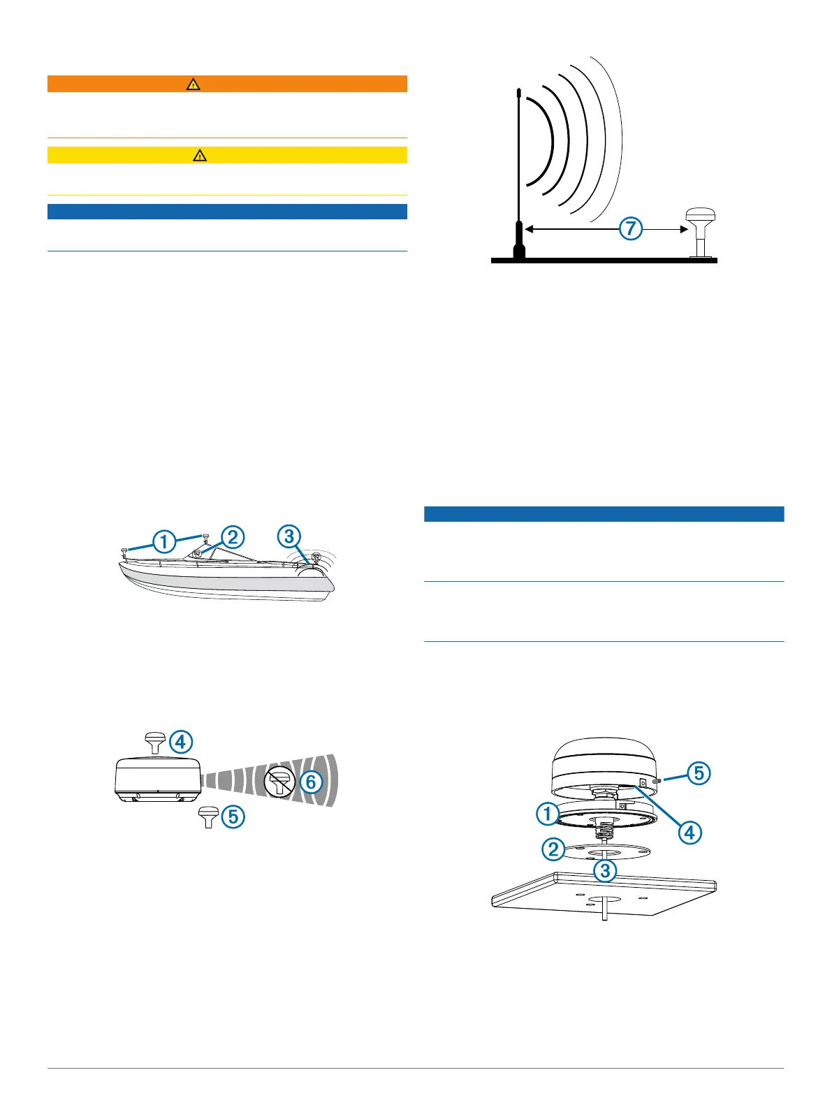 • Purjeveneessä antennia ei saa kiinnittää korkealle mastoon,