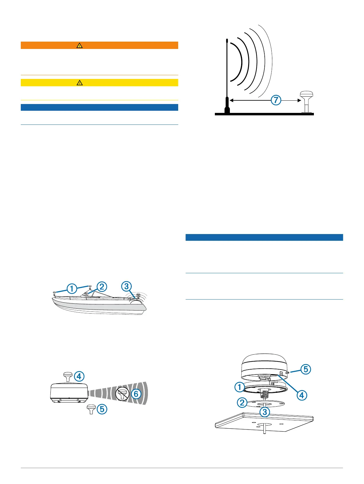 • Jeśli obecny jest radar, antenę należy zamontować powyżej