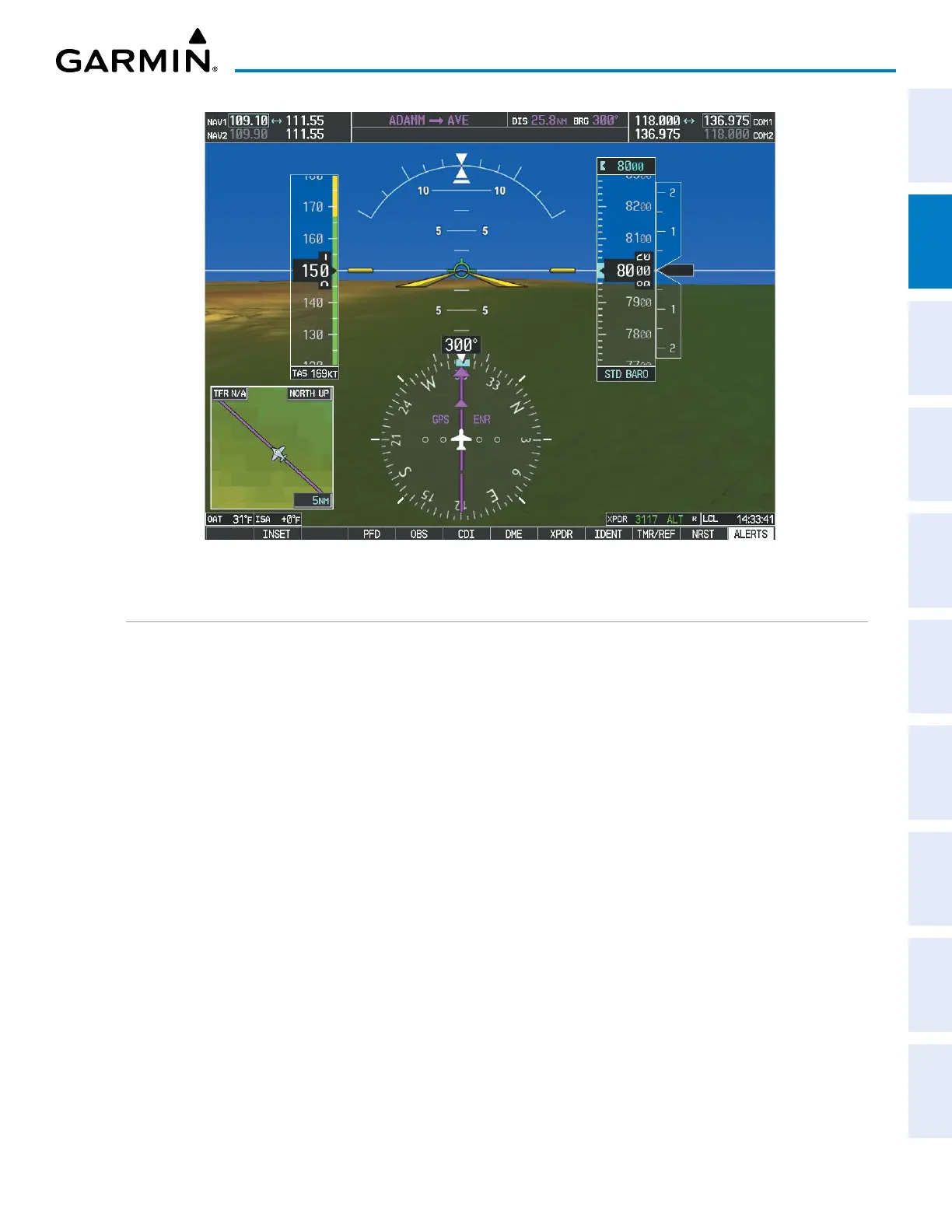 SVT is activated from the PFD using the softkeys located along the bottom edge of the display. Selecting the