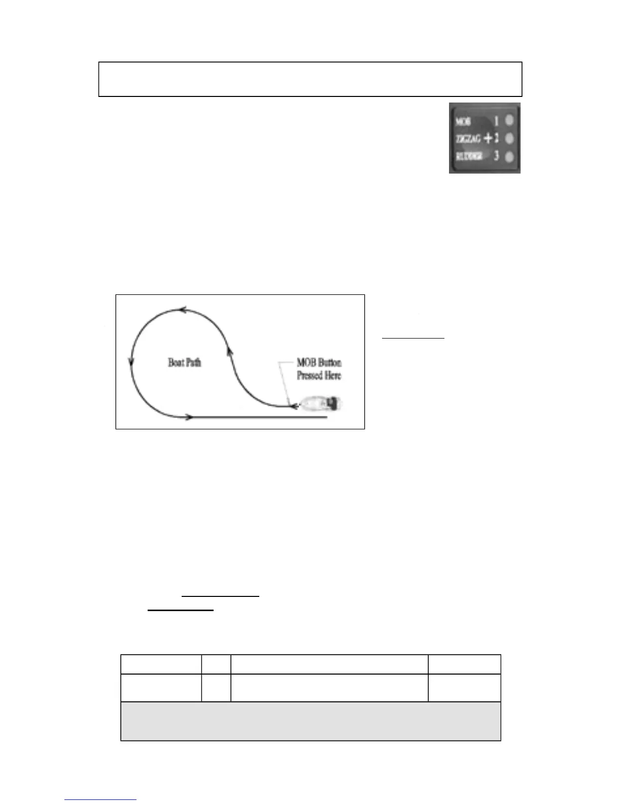 The Man Overboard (MOB) function causes the boat to turn to port until the reciprocal
