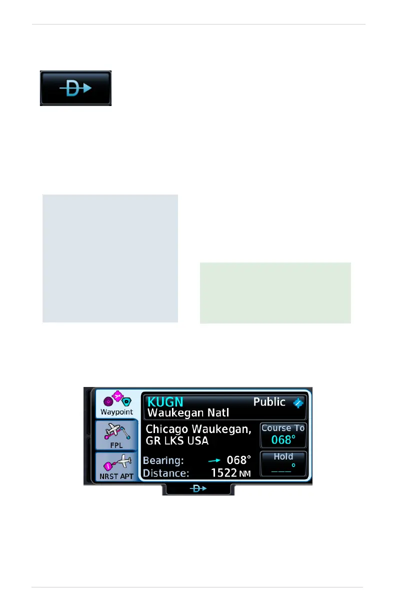 • Not all flight plan entries are selectable using Direct To (e.g., holds, course reversals)