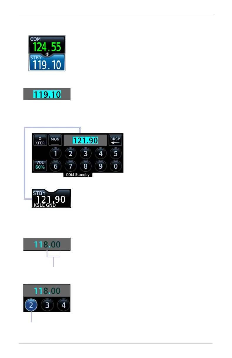 The current standby frequency value displays in the
