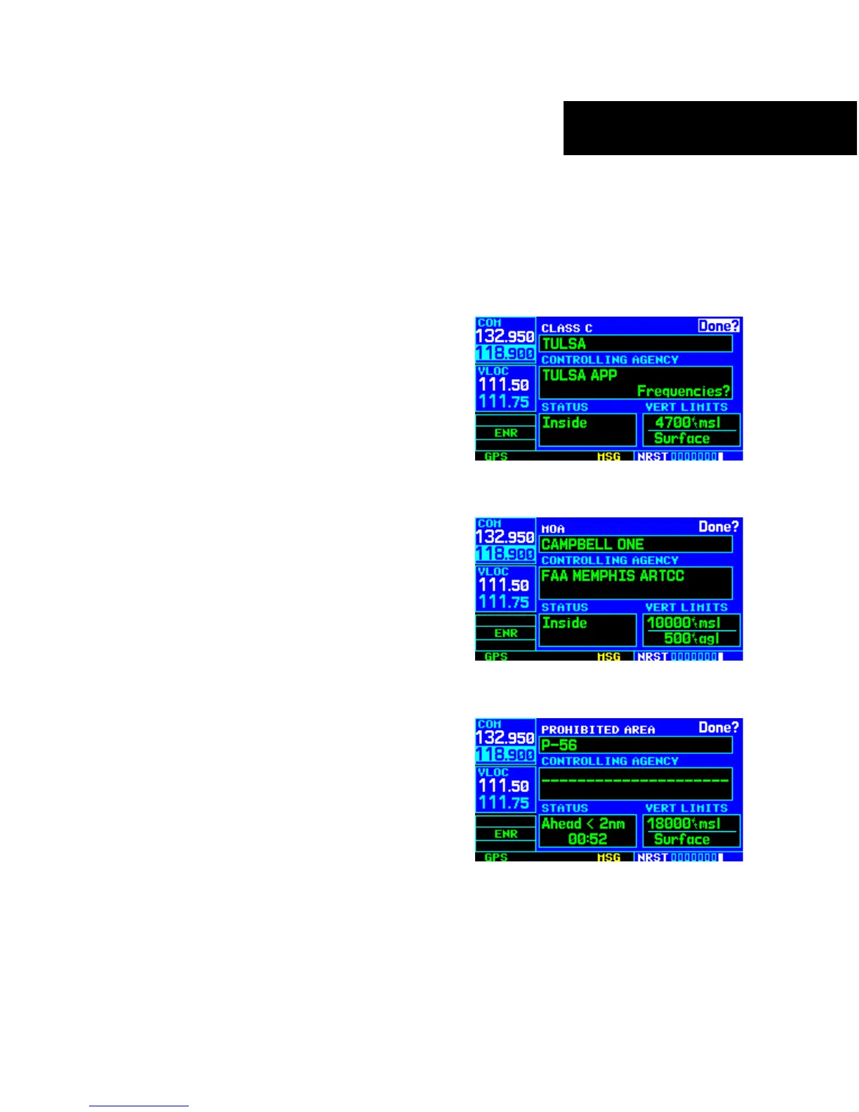 The Airspace Page displays (and airspace alert messages