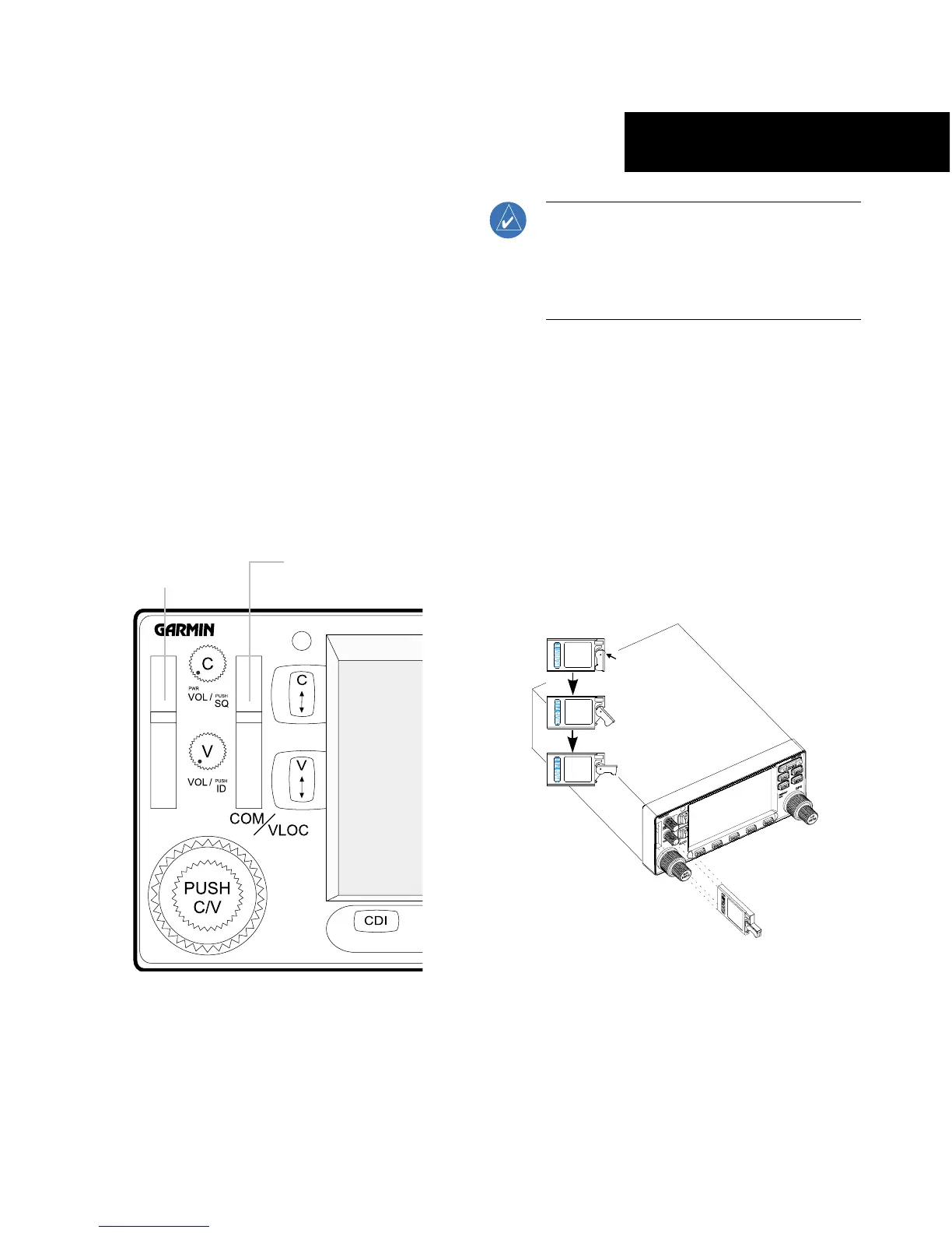 installed or removed when the GNS 430 is on or off. If the