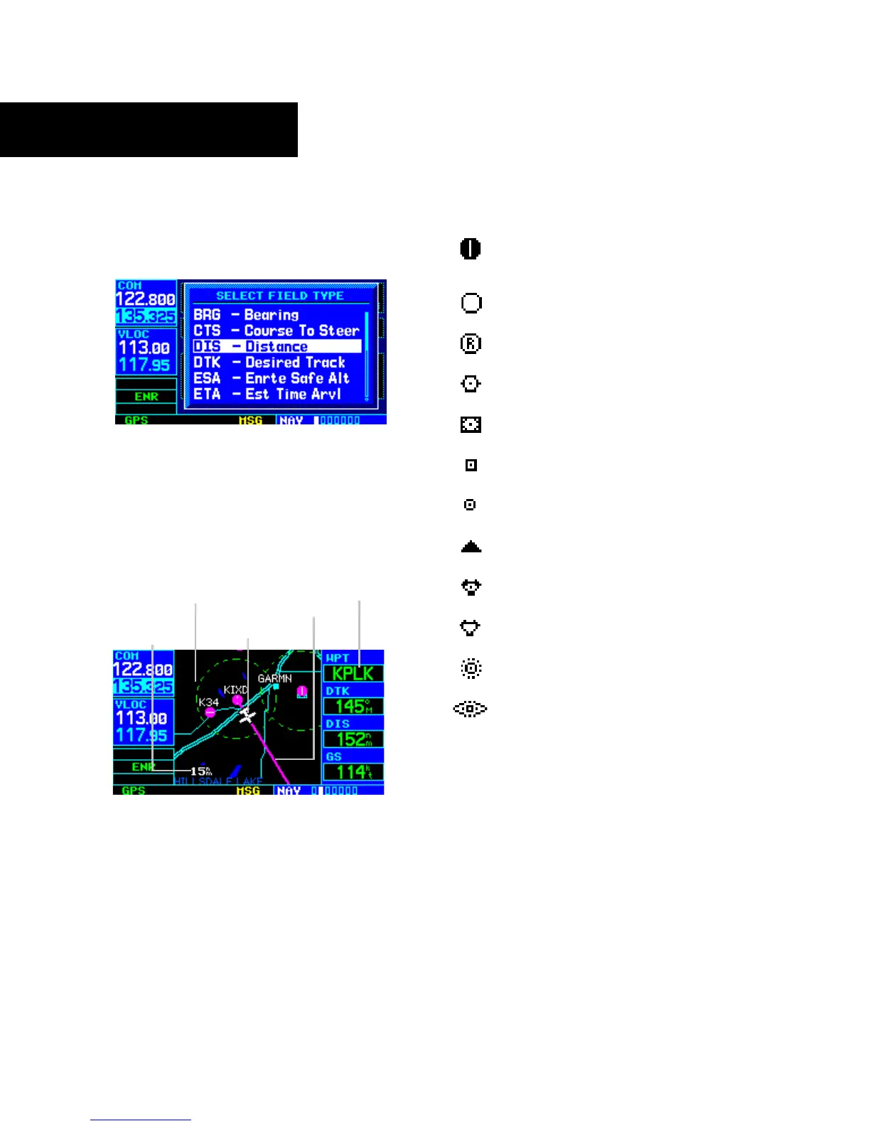 airports and navaids on the Map Page: