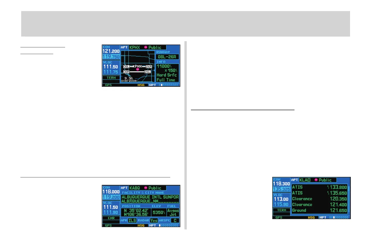 1. Select the airport frequencies page from the WPT page group. (See page 5.)