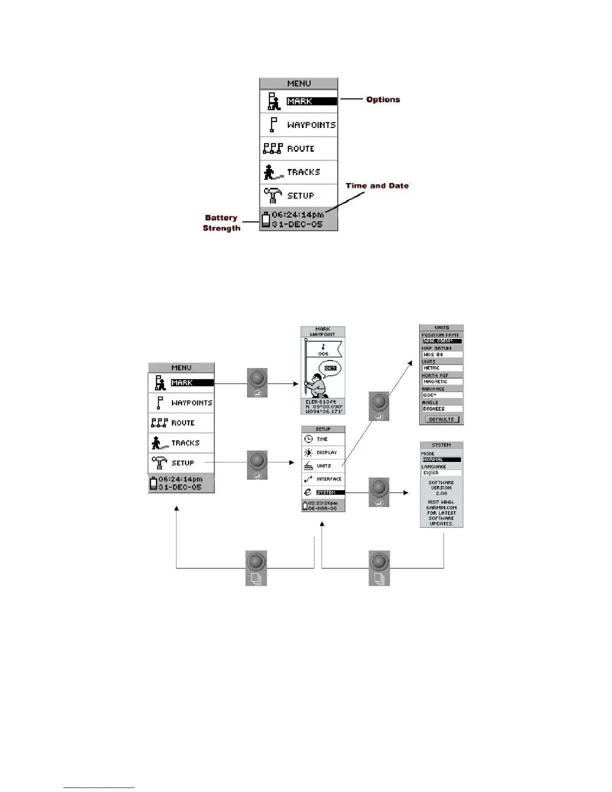 Figure 18 - Scheme to access the 'MARK' and 'SETUP' option pages