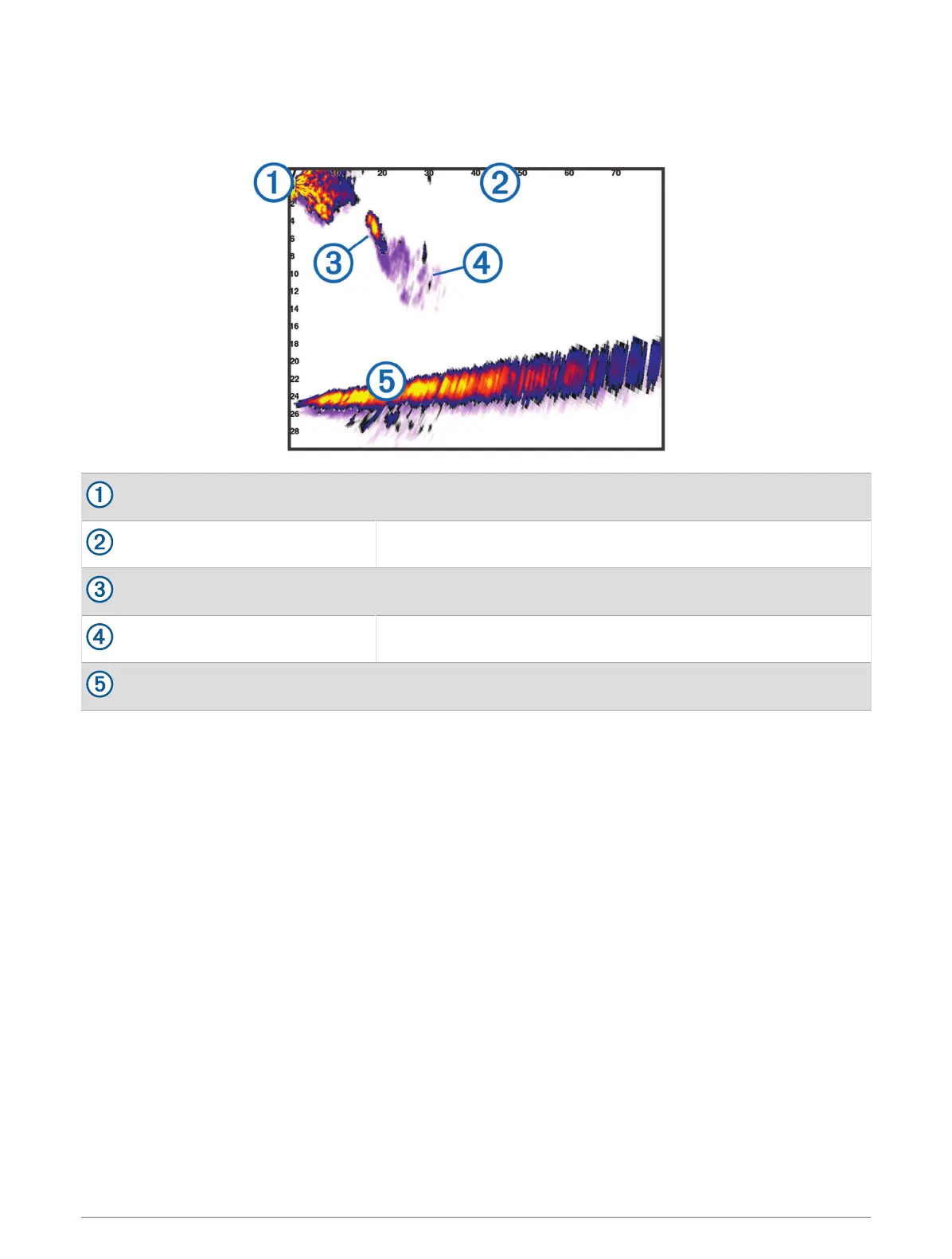 This sonar view shows a two-dimensional view of what is in front of the boat and can be used to see a bait ball