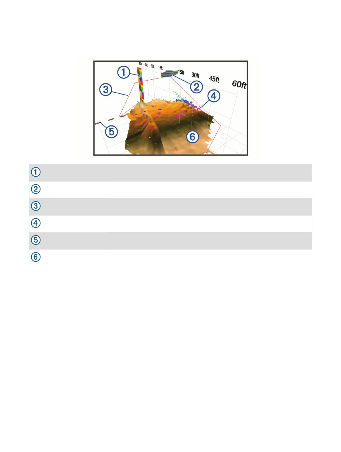 This sonar view shows a three-dimensional view of what is below the transducer and can be used when you are