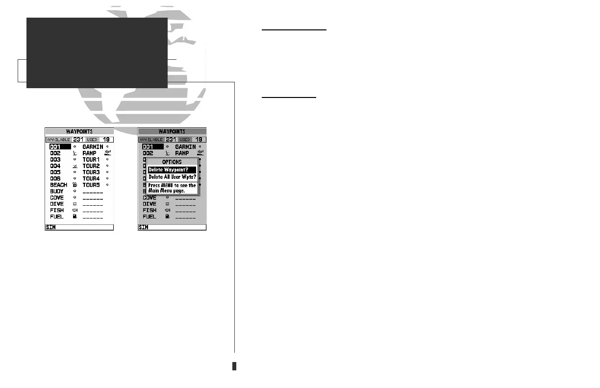 waypoints list, you may review, edit, rename or delete individual waypoints; or