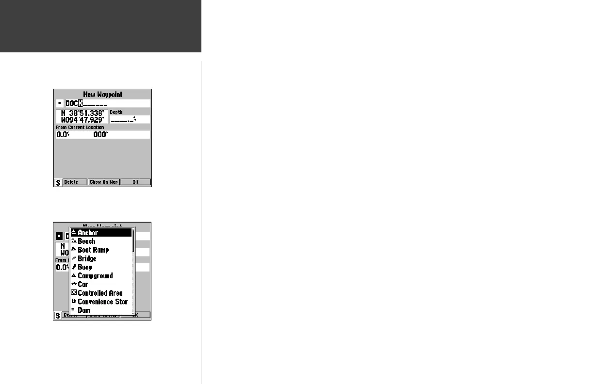 6. To access the waypoint symbol menu, highlight the waypoint symbol fi eld which is to the left of the