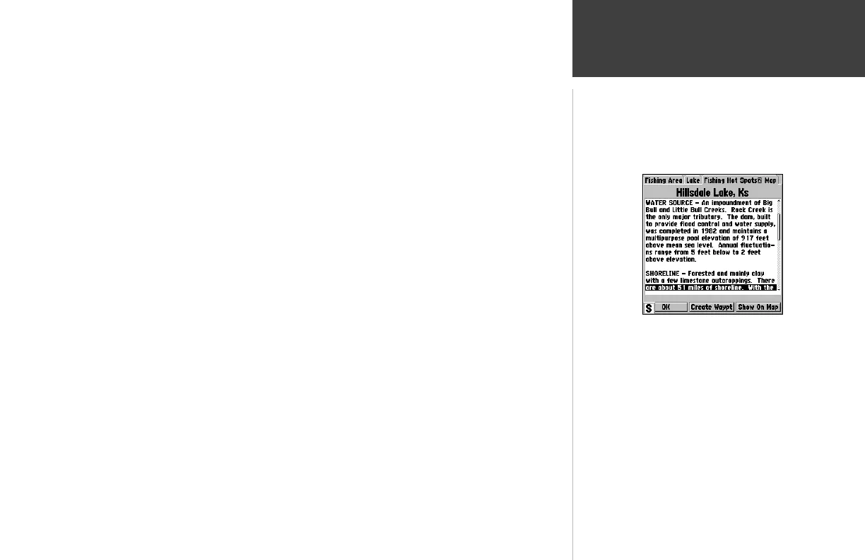 With MapSource Fishing HotSpots data loaded into the GPSMAP 162, additional details are