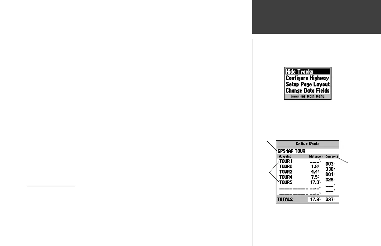 Whenever you have activated a route in the GPSMAP 162 system, the Active Route page will show