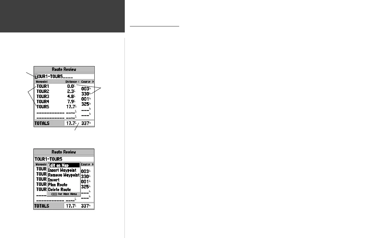 be highlighted. This allows you to review each point on the route by pressing only ENTER/MARK