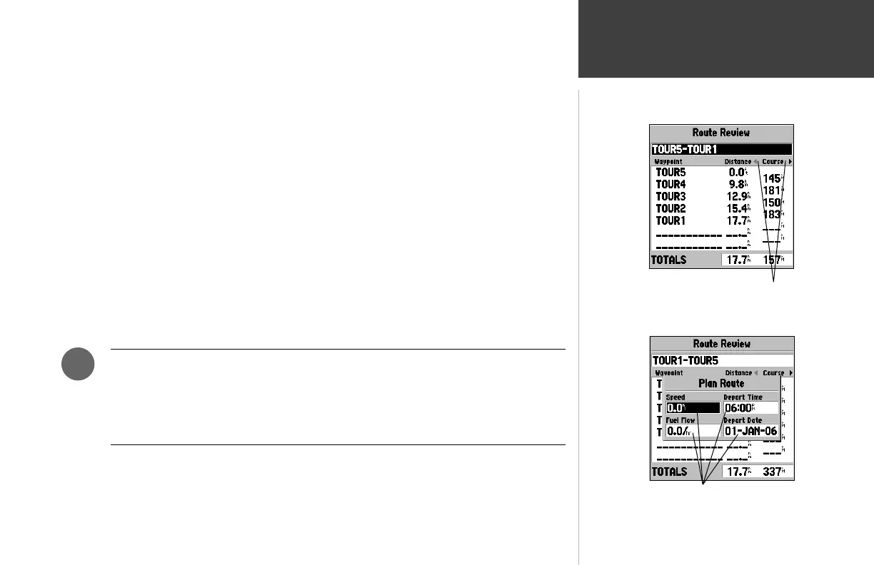 ENTER/MARK to display the Route Review page. If you have an active route, you may also do the