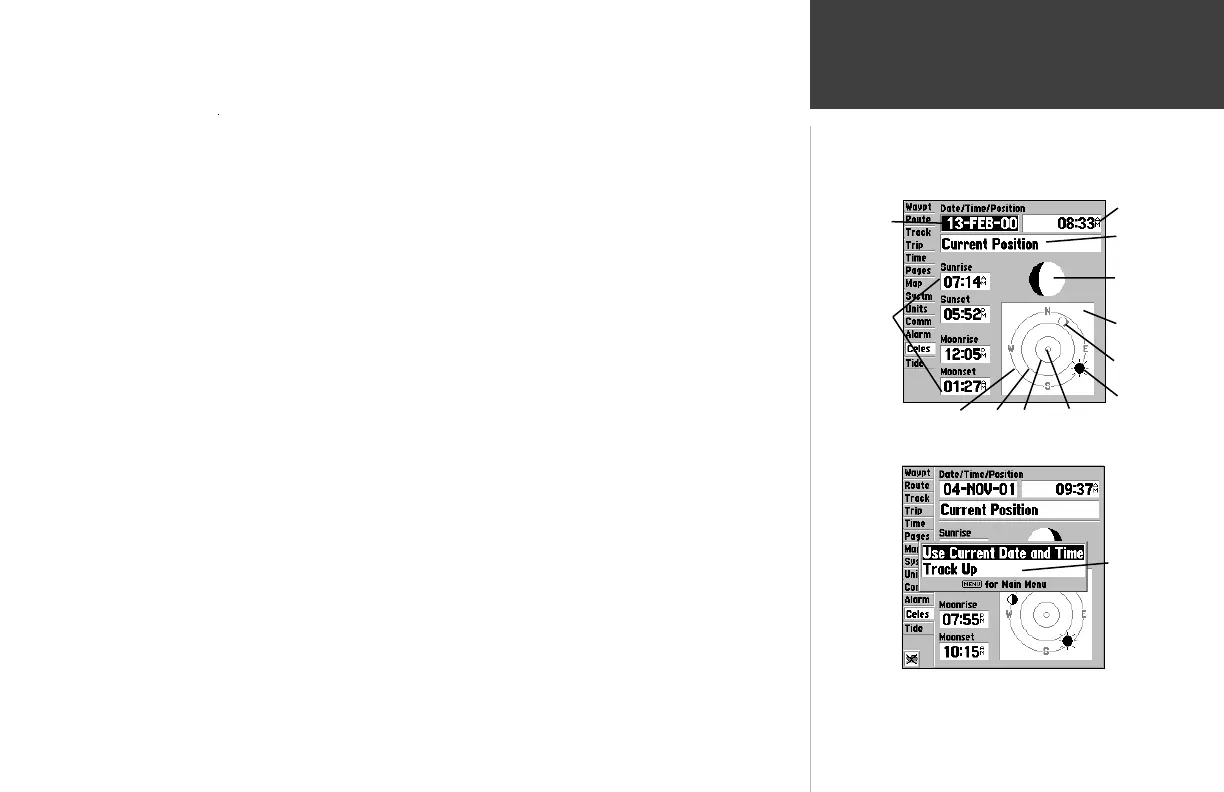 The location the unit is using will appear in the Date/Time/Position fi eld. The timetables displayed