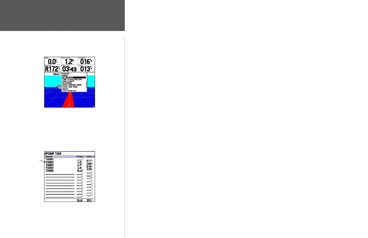 the next point along the route. For more detailed information on the Active Route Page, see page 50.