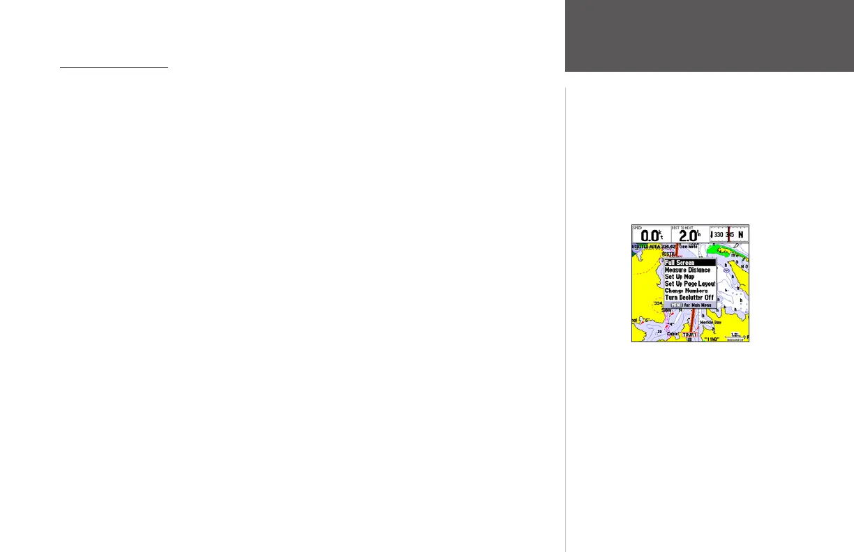 The GPSMAP 172/172C’s Map Page provides access to functions and features relating to the Map
