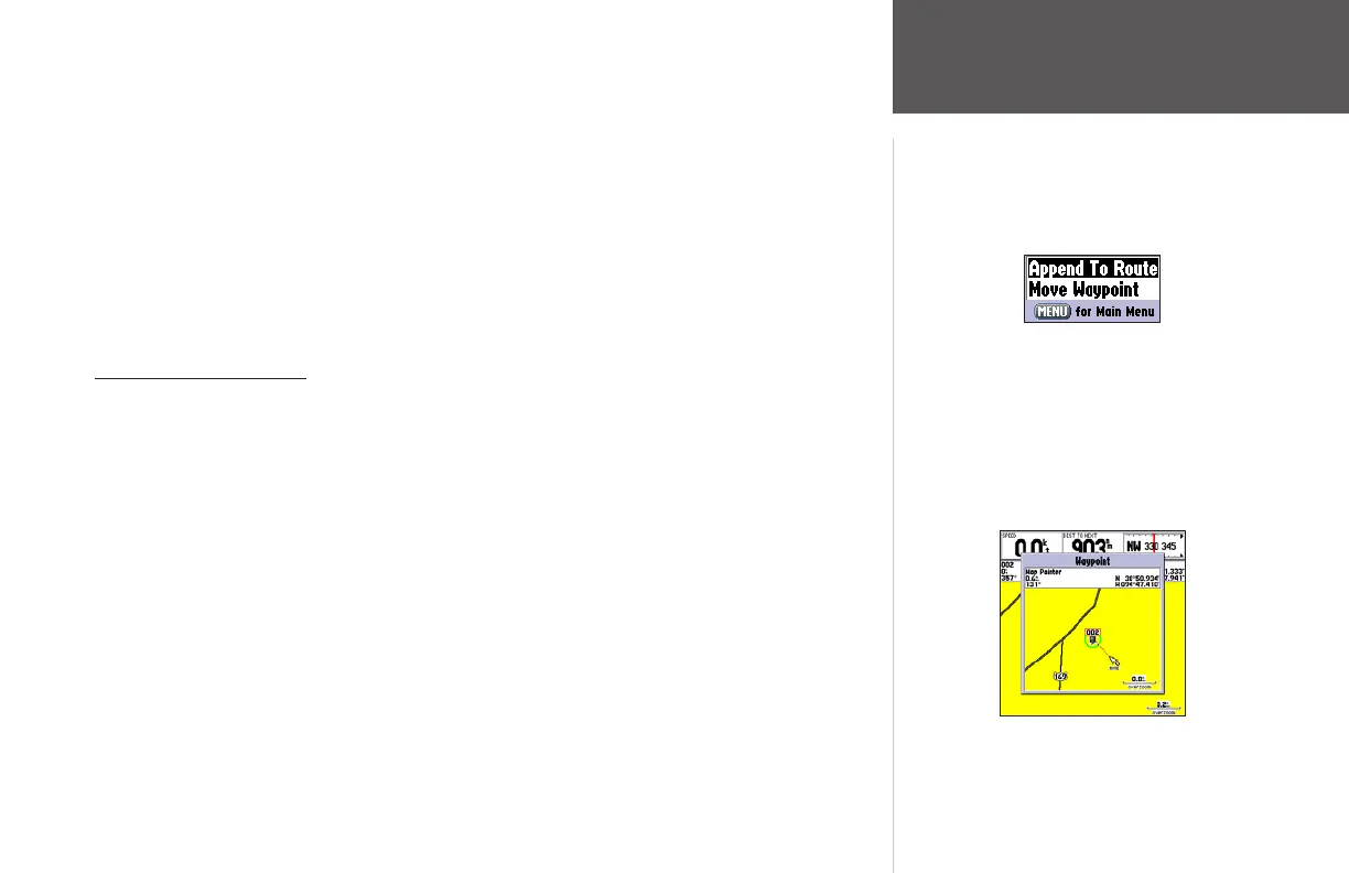 Waypoint Pages: Append To Route and Move Waypoint. (these menu options also appear on the