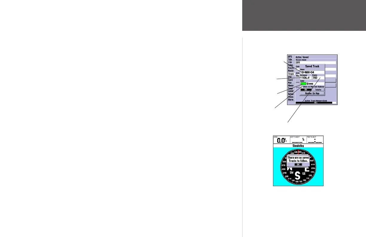 • There must be at least two track log points stored in memory to create a TracBack route.