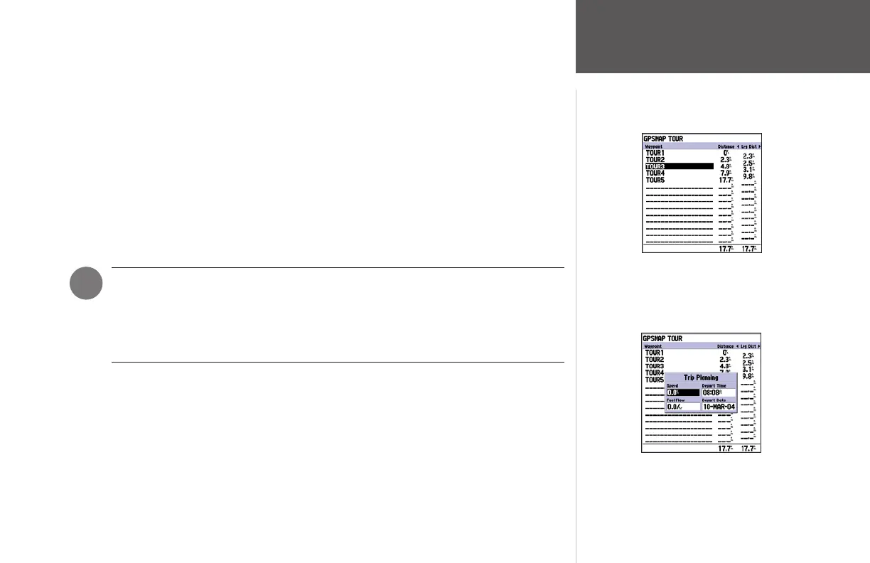 3. To enter planning information (from the Route Review Page only), press MENU and select ‘Trip