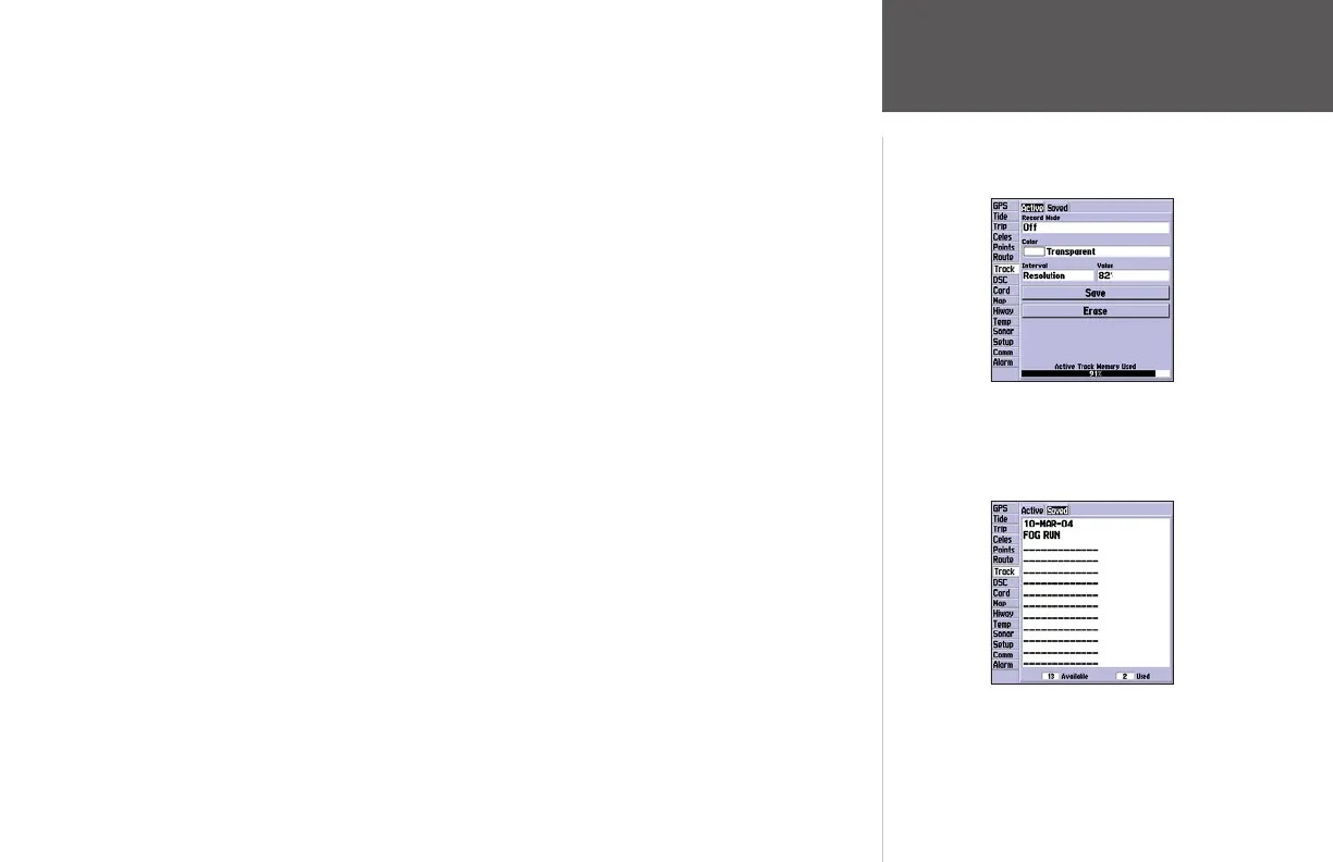 • Erase— allows you to clear the active track log currently stored in memory.