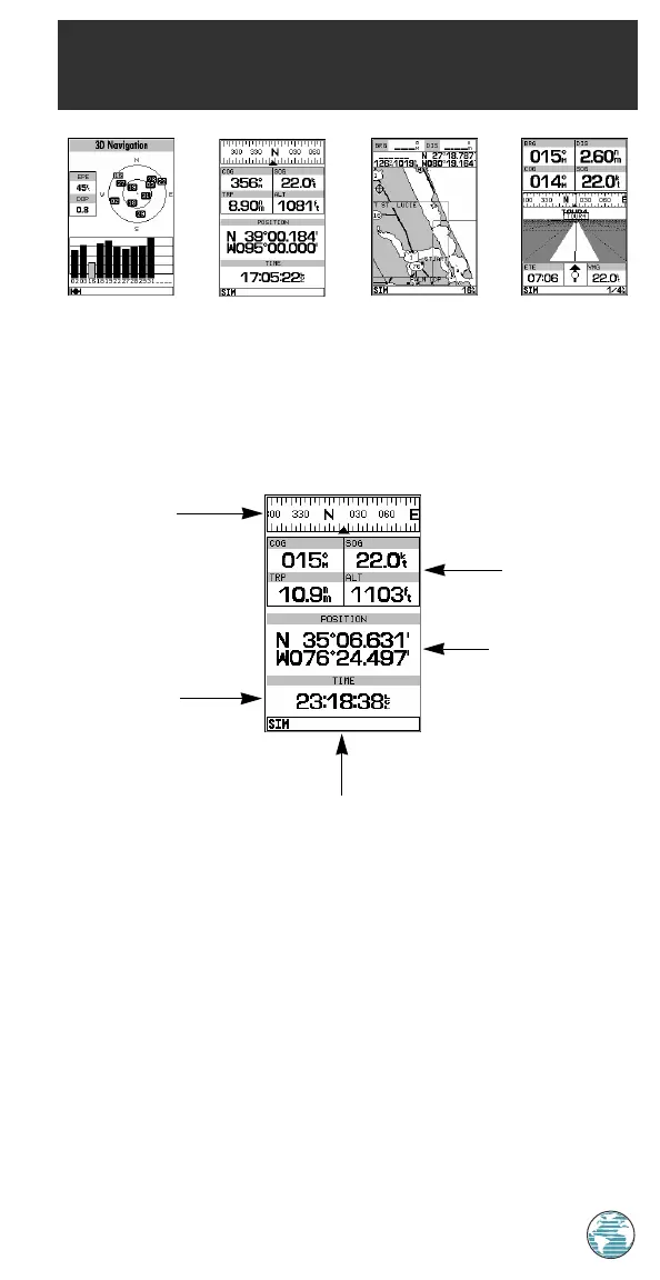 indicates your cardinal heading while you’re moving. The four user-selectable