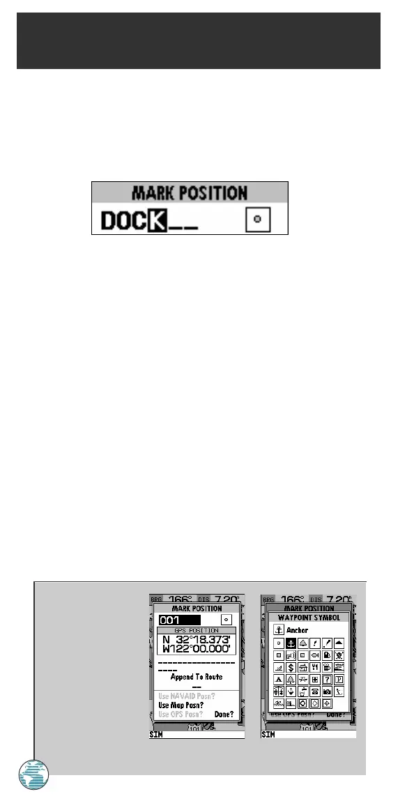 2. Use the R keypad to highlight the waypoint name field (001) and press T.