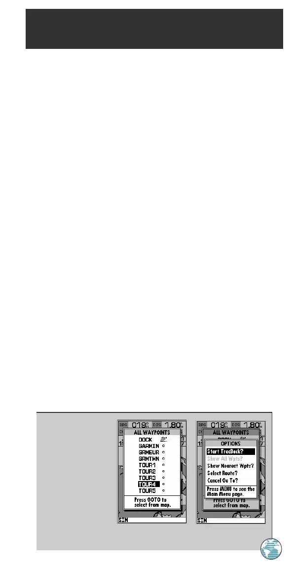 that lets you start a TracBack route, select a destination waypoint from the