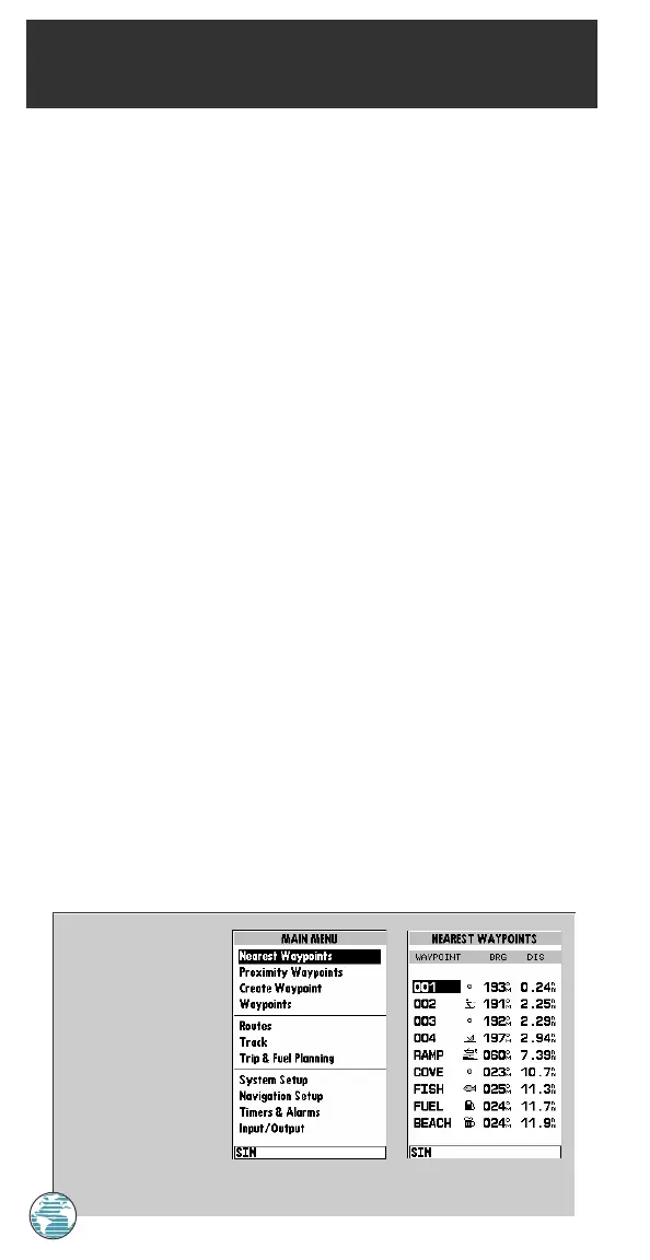 submenus also provide a continuously updated nearest waypoints list and a