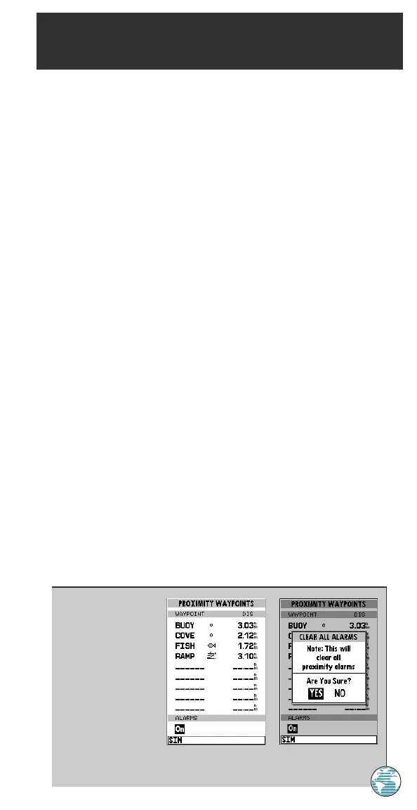 4. To clear all proximity waypoints, select the ‘Clear All’ option and press T.