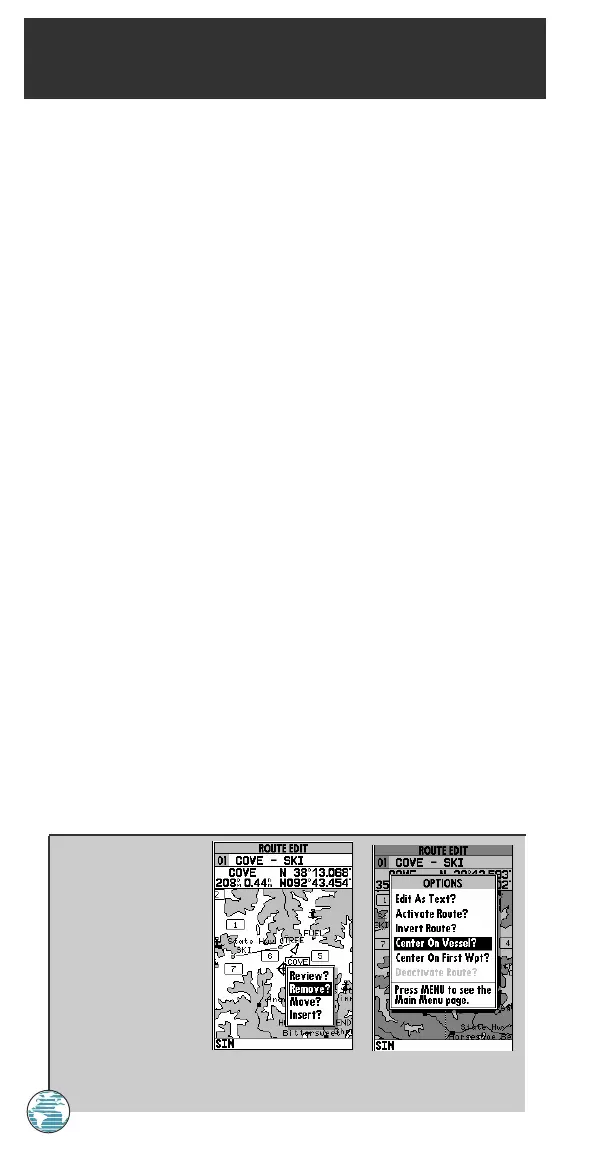 or deactivate the route you are editing. The ‘Center On Vessel’ and ‘Center On