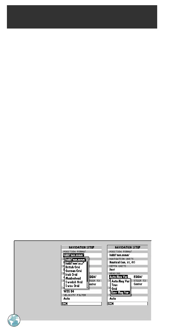 preferences. This submenu is also used to select map datums, set the CDI