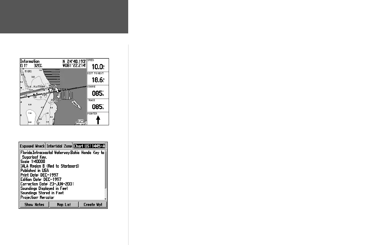 (‘Show Map’) or create a waypoint at the map feature location (‘Create Wpt’). In some cases, addi-