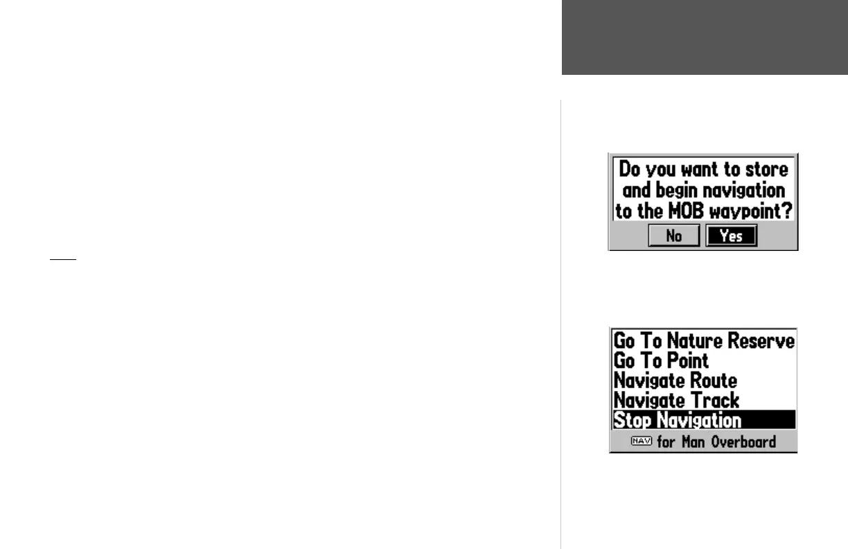 guide you back to the MOB point. The MOB waypoint will be stored in the waypoint list and may be