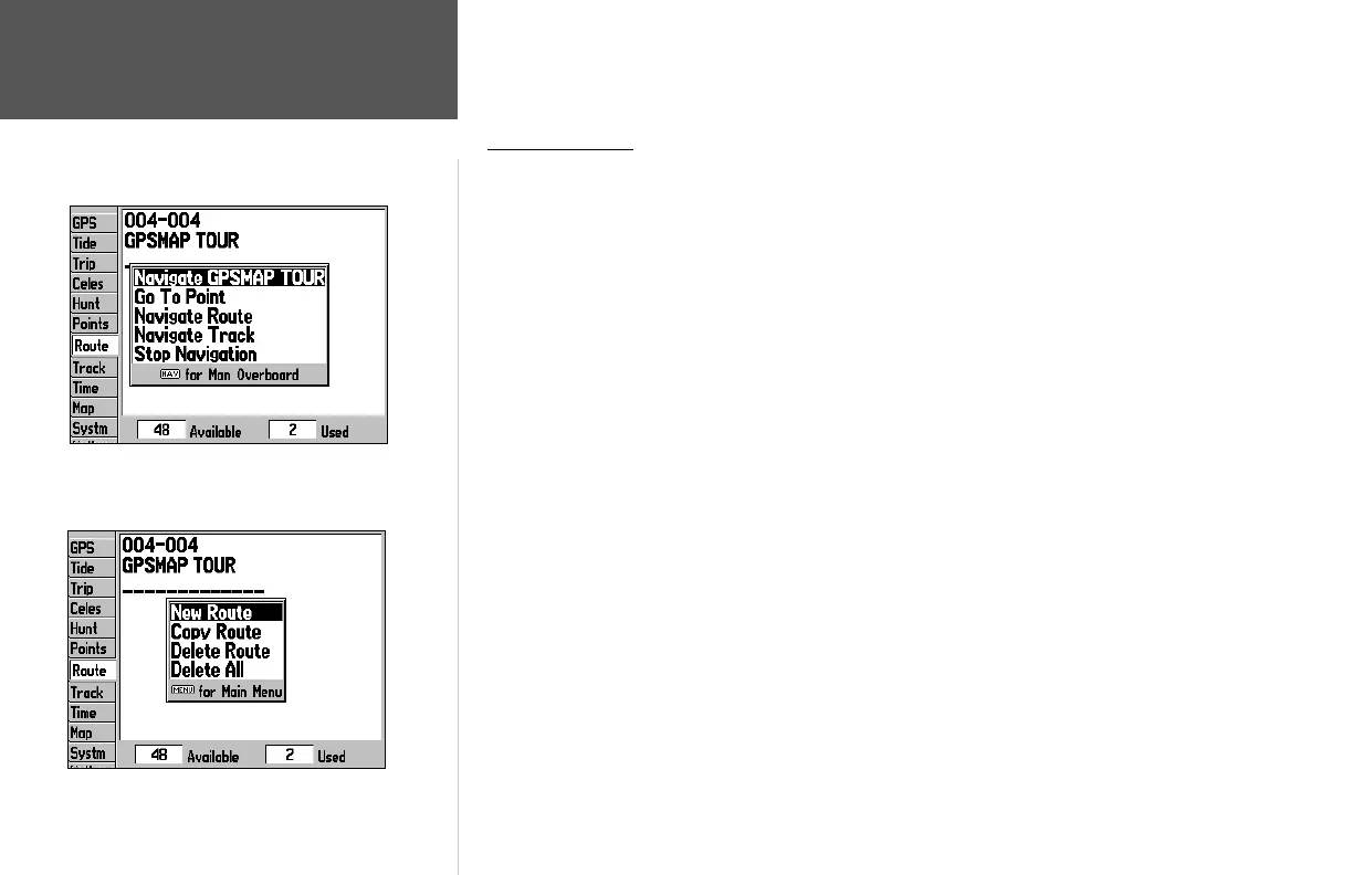 stored in memory, along with a descriptive name for each route. By pressing the MENU button on