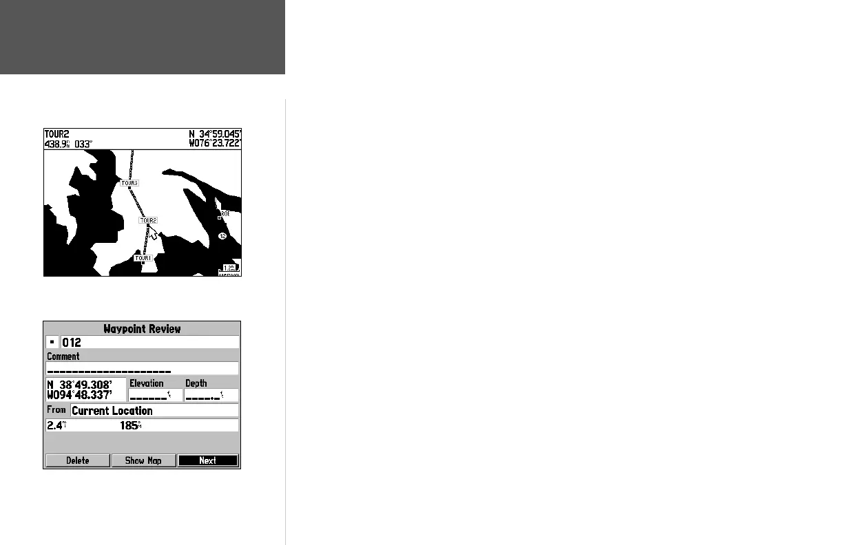 5. Repeat steps 3 and 4 to insert additional waypoints, or press QUIT to fi nish.