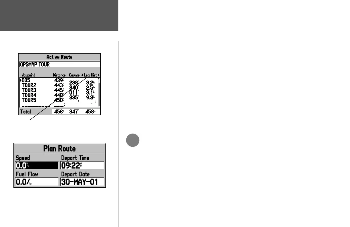 2. One of nine available planning fi gures appears to the right of each route waypoint and its distance