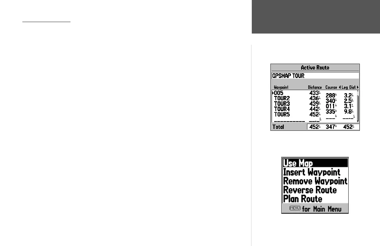 Whenever you have activated a route in the GPSMAP 176, the Active Route Page shows each point