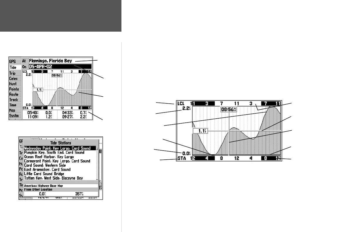 The top of the page displays the tide station being referenced, below that the date. The top of the