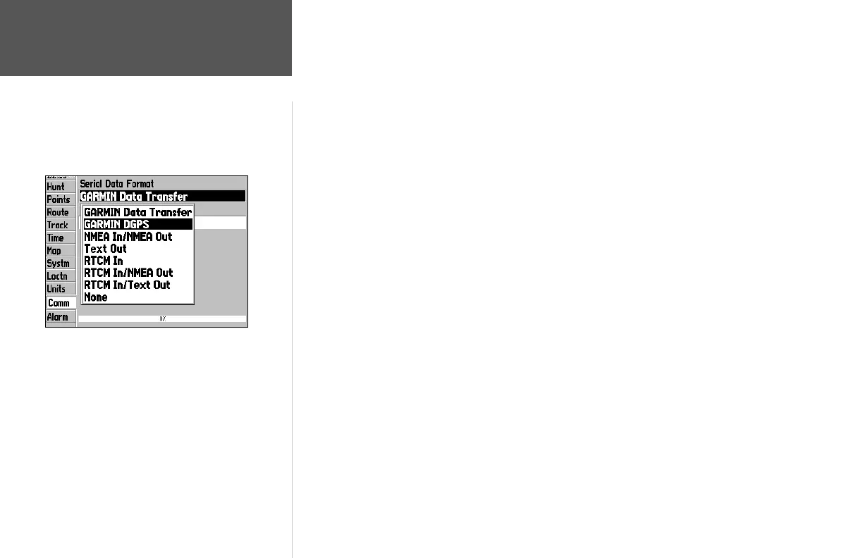 If you select ‘Garmin DGPS’ or ‘RTCM In/NMEA Out,’ additional