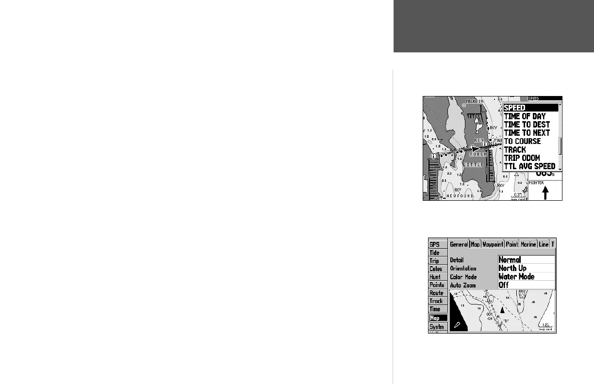 • Set Up Map— jumps to the Map tab of the Main Menu, allowing you to confi gure the map display to