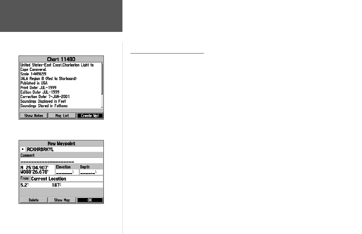 To change the name, symbol, position, or enter comments, elevation or depth, highlight the appropri-