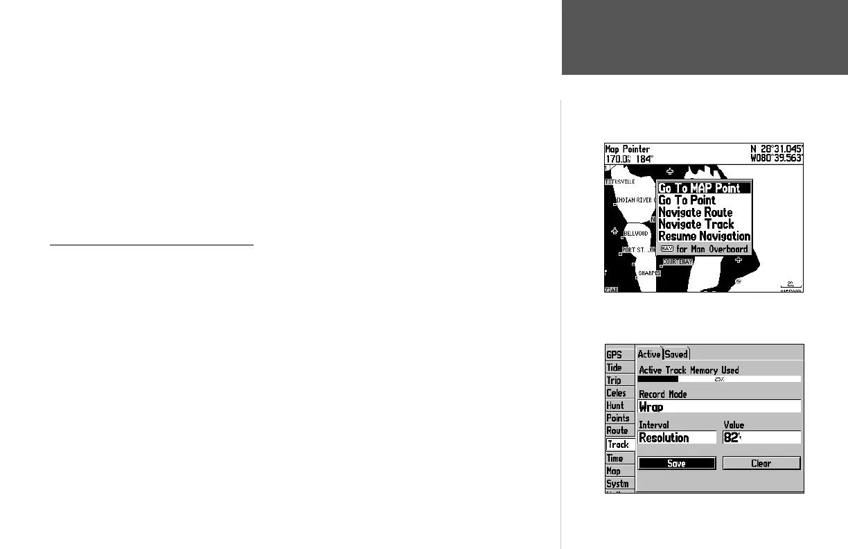 You must fi rst save the track log before you can use the ‘Navigate Track’ feature. The Save feature