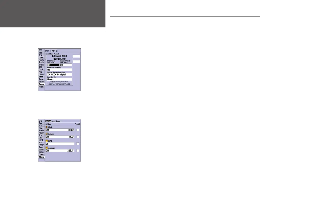 DGPS – sets an alarm to sound when the unit loses a differential fix.