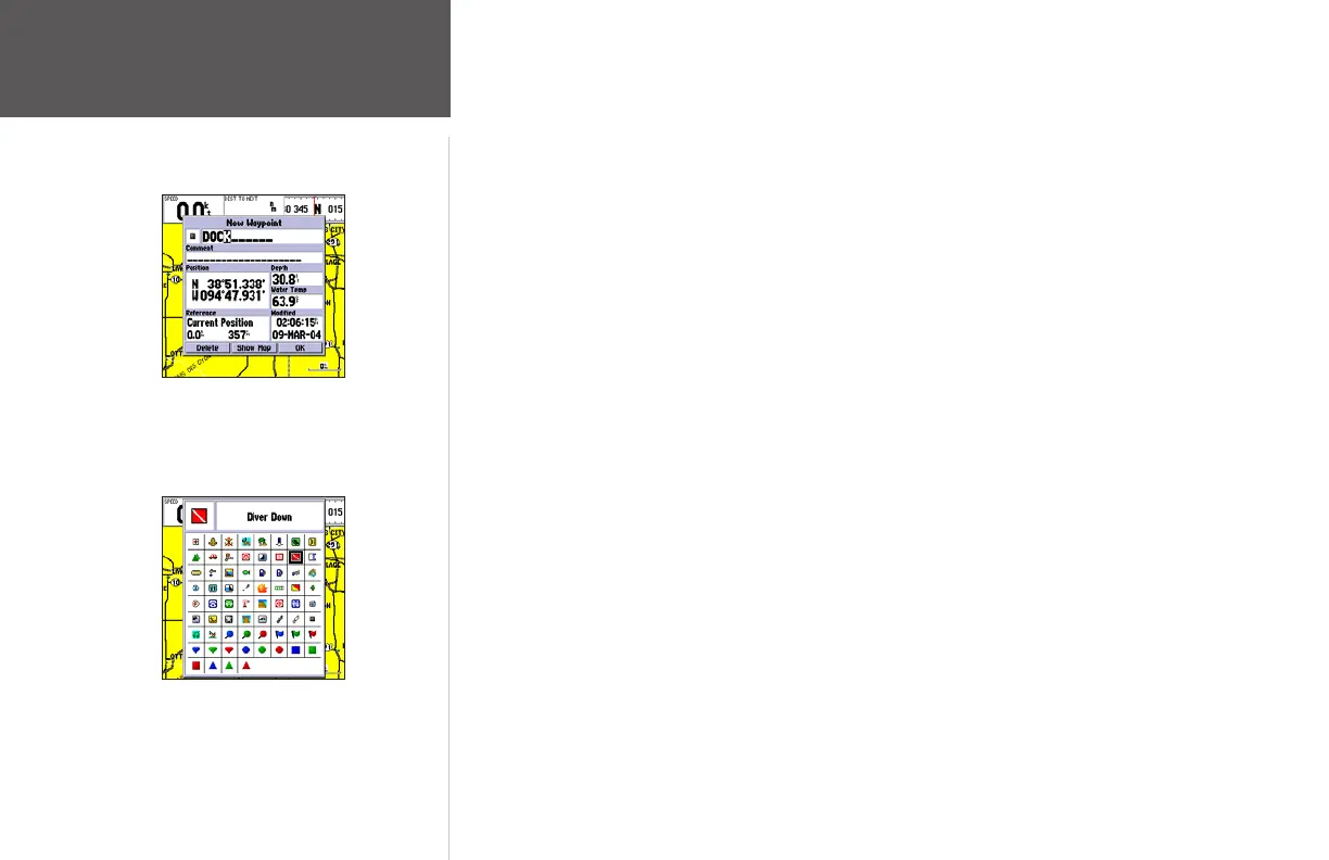 waypoint’s name and press ENTER/MARK. The default symbol is a dot.