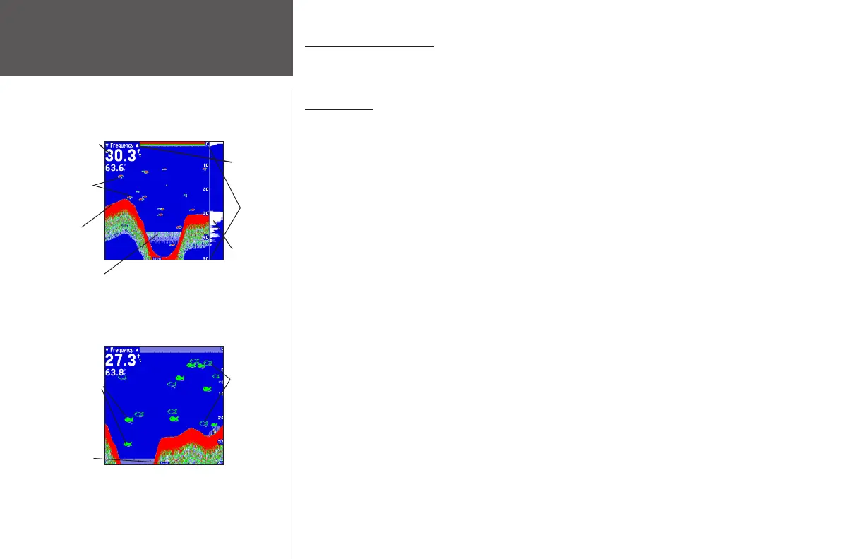 in a lighter shade of gray. The ‘Fish Symbols’ option (see page 38) allows you to view the actual sonar